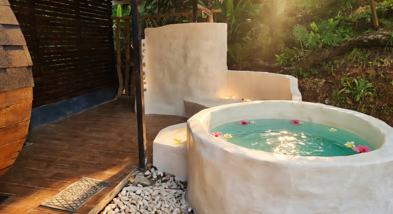 This ice bath or plunge pool not only enhances the overall experience of living in beautiful Costa Rica but also makes it significantly more unique and memorable. The numerous benefits of this method are well known, including improved circulation, reduced muscle soreness, and a profound sense of relaxation. Immersing oneself in cold water provides an invigorating way to refresh the body and mind, making it a popular practice among both locals and tourists alike. Additionally, the natural beauty surrounding these plunge pools adds to the aesthetic appeal, creating a serene atmosphere perfect for unwinding and rejuvenating after a long day.