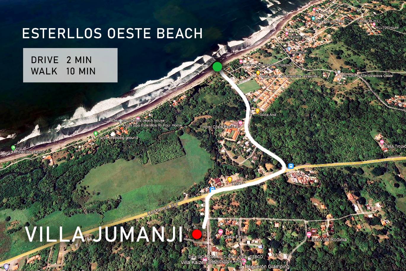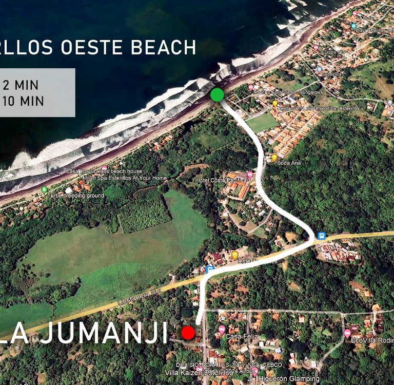 Jumanji is located in Esterillos Oeste, a quiet coastal area between Jaco and Manuel Antonio National Park