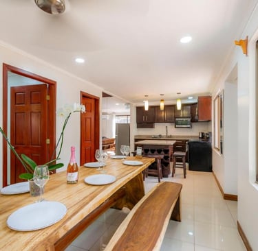 Rise to an expansive dining table that lets you appreciate the cultural aspects of guanacaste wood in your kitchen