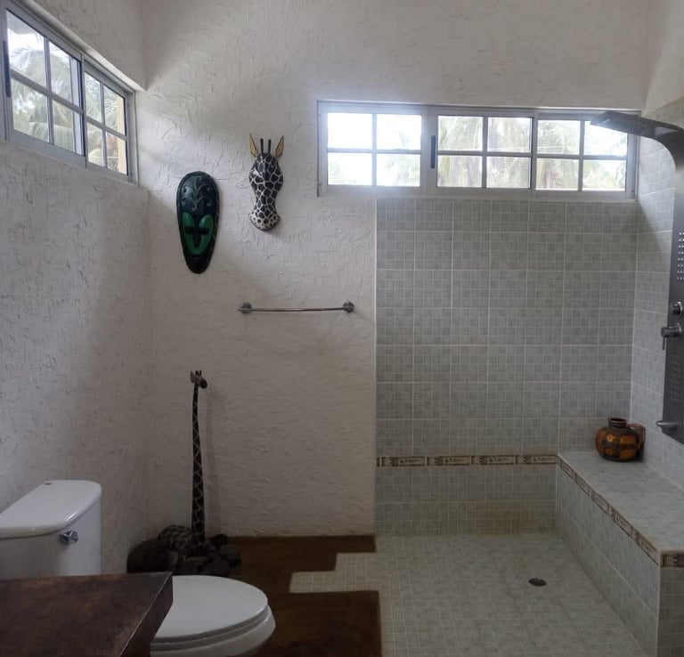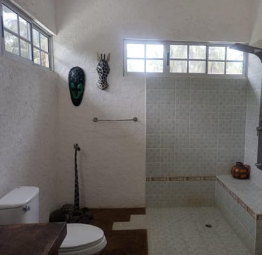 The bathrooms showcase designs that are both sophisticated and representative of Costa Rican aesthetics, featuring vibrant hues and natural materials that embody the region's rich culture. Each element, from exquisitely crafted tiles to artisanal fixtures, is meticulously created to foster a calm and inviting environment that elevates the overall experience of rest and comfort.