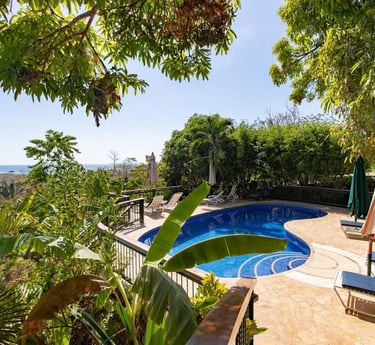 Secluded in the growing area of Nosara, enjoy the tranquility of the lush greenery surrounding you in this spacious villa. Experience the harmony of nature as you step outside to find vibrant flora and the soothing sounds of a nearby stream, creating a perfect retreat. Take leisurely walks through the rich landscapes, breathe in the fresh air, and unwind in the peaceful ambiance that this stunning location offers. Whether you're lounging by the pool or exploring the nearby beaches, you'll find every moment spent here to be revitalizing and unforgettable.