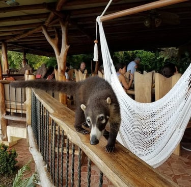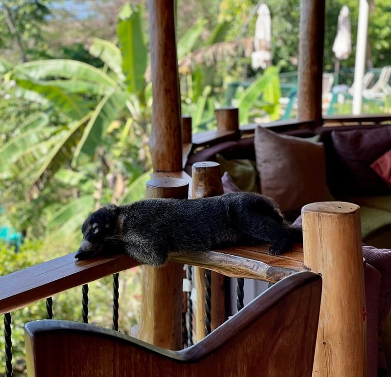 Enjoy being with some of nature's most kind and delicate animals. The coati find comfort and relaxation in this hotel's relaxed atmosphere. They wander freely among the lush greenery, their curious nature inviting guests to observe their playful antics. The gentle rustle of leaves and the soft chirping of birds create a serene backdrop, making this experience truly enchanting. Visitors often find themselves captivated by the charm these creatures bring, adding warmth and joy to their stay.